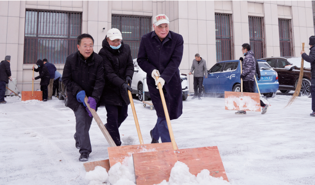 ① 團結力量大,曹和平董事長深入基層一線,與員工一起協作清雪。② 幾十年如一日的清雪工作,是曹和平董事長不變的勤勞與堅持。③ 曹和平董事長冒著嚴寒,頂著意猶未盡飄落的雪花,最早到達單位清雪。辛丑仲冬,...